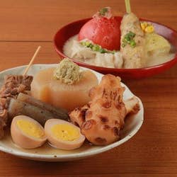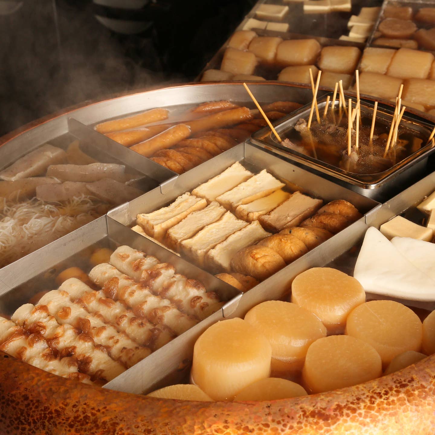 冬こそ楽しみたい湯気と出汁の香り漂う創作おでん!おでん屋たけしでは、毎日仕込む30種類以上のおでん(220円~)を味わえます。