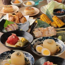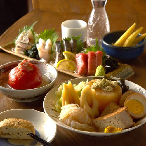 店内には大きなおでん鍋があり、香り豊かな出汁に包まれながら、職人の手仕事を間近で見ることができます。ランチタイムは名物の「鯖めし」や「あご鮭」などの定食が充実。ディナータイムには炉端焼きに加え、「青竹蛸つみれ」や「骨付き鶏」などのこだわ...